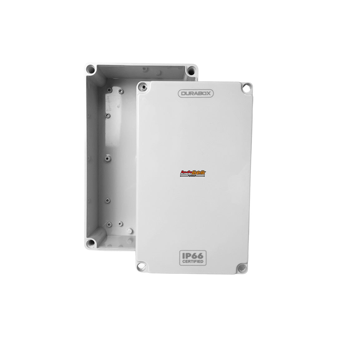 Durabox ABS Junction Box Panel Plastik 150x250x100 mm Abu-abu merupakan box multifungsi yang banyak digunakan untuk perakitan komponen panel listrik dan pelindung komponen listrik. Durabox ABS junction box panel plastik warna Abu-abu memiliki panjang 150 mm, lebar 250 mm dan ketebalan 100 mm. Durabox ABS Plastic Box terbuat dari material ABS berkualitas yang diproduksi dengan International Standard sehingga dapat melindungi komponen dari debu (dust proof), cipratan air (waterproof), guncangan dan zat kimia. Durabox ABS Box / Box Panel Plastik / Enclosure Box / Switch Box / Electrical Distribution Box / Junction Box, cocok digunakan untuk pemasangan di dalam ruangan (indoor) maupun diluar ruangan (outdoor) seperti pada pemasangan jaringan telekomunikasi dan data, perakitan panel listrik, instalasi tombol kontrol pada mesin dan electronic. Durabox ABS Junction Box Panel Plastik 150x250x100 mm Abu-abu dilengkapi dengan baut untuk mengunci untuk mempermudah pemasangan dan perakitan.