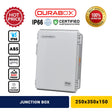Durabox Box Panel Plastik ABS 250x350x150 mm Abu-abu Lengkap Base Plate merupakan box multifungsi yang banyak digunakan untuk perakitan komponen panel listrik dan pelindung komponen listrik. Durabox Box Panel Plastik ABS 250x350x150 mm Abu-abu Lengkap Base Plate memiliki ukuran 250 mm x 350 mm dengan ketebalan 150 mm. Durabox ABS Plastic Box terbuat dari material ABS berkualitas yang diproduksi mengikuti International Standard sehingga dapat melindungi komponen dari debu (dust proof), cipratan air (waterproof), guncangan dan zat kimia. Durabox ABS Box / Box Panel Plastik / Enclosure Box / Switch Box / Electrical Distribution Box / Junction Box, cocok digunakan untuk pemasangan di dalam ruangan (indoor) maupun diluar ruangan (outdoor) seperti pada pemasangan jaringan telekomunikasi dan data, perakitan panel listrik, instalasi tombol kontrol pada mesin dan electronic.Durabox Box Panel Plastik ABS 250x350x150 mm Abu-abu Lengkap Base Plate dilengkapi dengan engsel dan klip latches untuk mengunci dan juga sudah dilengkapi dengan base plate (tatakan) untuk mempermudah pemasangan dan perakitan.