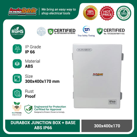 Rp 626.250,00Rp 835.000,00Unit price /UnavailableABS Junction Box Plastik 200x300 x 170 mm Abu-abu + Base Plate Durabox