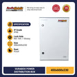 Durabox Box Panel 600 x 400 x 230 mm Polyester + Metal IP65 Weatherproof berfungsi sebagai tempat rangkain-rangakaian komponen listrik. Box panel ini memiliki ukuran lebar 40 cm, tinggi 60 cm dan tebal 23 cm. Box panel ini biasa dipasang di dalam ruangan (Indoor). Durabox Box Panel 600 x 400 x 230 mm Polyester + Metal IP65 Weatherproof dilengkapi dengan engsel dalam sehingga pintu panel lebih mudah dibuka dan lebih tahan lama. Box panel juga telah dilengkapi dengan kunci cam lock untuk keamanan serta base plate untuk mempermudah perakitan komponen panel. Box Panel terbuat dari material plat dan polyester pilihan dengan kualitas handal dan cocok digunakan untuk pemasangan di rumah, perkantoran, pusat perbelanjaan, hotel dan pabrik industri. Box Panel ini terbuat dari bahan logam,sehingga dalam perakitan panel disarankan untuk memasang ground agar lebih aman bagi pengguna.