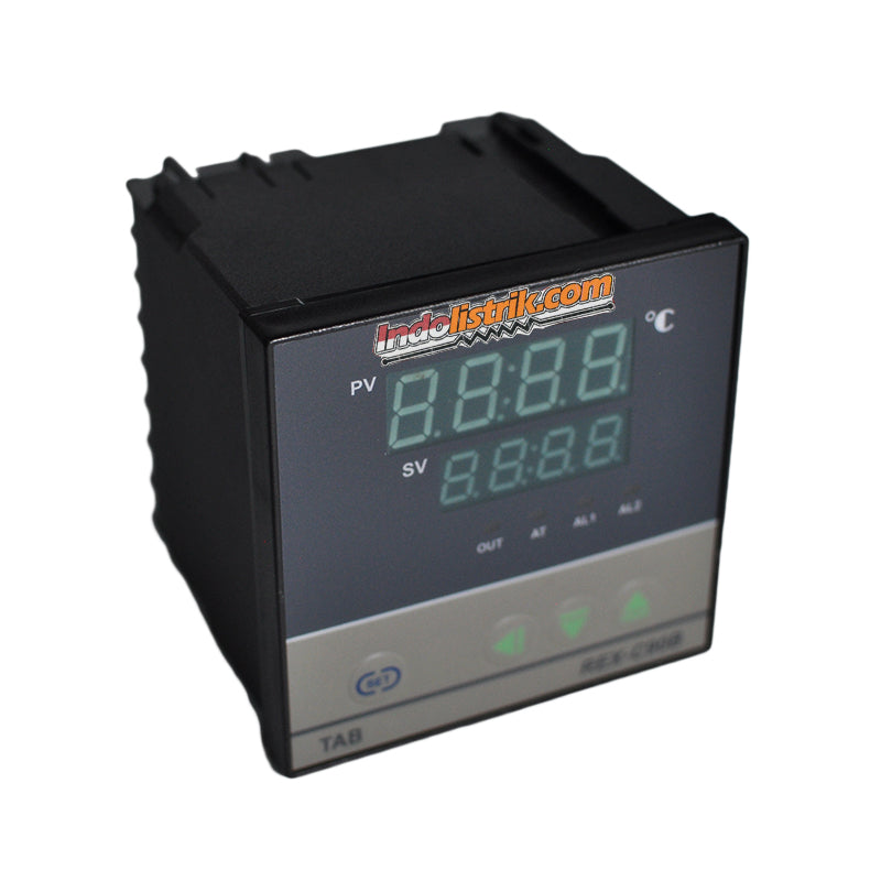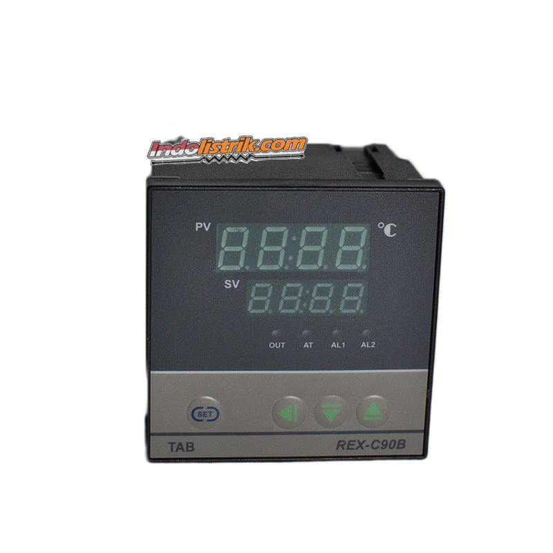 TAB Temperatur Control / Temperature Controller / Temperature Control REX C90B adalah alat yang berfungsi sebagai kontrol suhu untuk mengendalikan cooler / heater sesuai dengan settingan yang diinginkan. Temperature controller bekerja dengan cara mendeteksi suhu ruangan, kemudian menggerakan perangkat untuk fungsi on atau off guna memasukan atau mengeluarkan energi panas ke dalam ruangan agar mencapai suhu rata – rata yang diinginkan. Temperature controller dapat digunakan bersama dengan input sensor suhu seperti termokopel, RTD dan perangkat output seperti pemanas, pendingin, alarm dan perangkat lainnya.