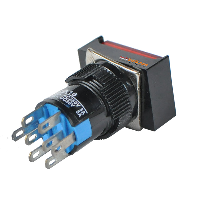 TAB Illuminated Push Button LED 16mm LA16F-22D Kotak 24 VDC Merah digunakan sebagai saklar untuk menghubungkan atau memutus aliran arus listrik dengan sistem kerja tekan. Illuminated Push Button LED LA16F-22D berwarna merah dengan model kepala kotak berdiameter 16 mm dan memiliki kontak 2 NO + 2 NC untuk tegangan 24 V DC dilengkapi lampu protected LED. Illuminated Push Button LED 16 mm LA16F-22D Kotak 24 V DC dengan sistem Momentary / spring return artinya akan menghubungkan atau memutus aliran arus listrik pada saat di tekan dan pada saat tidak di tekan (di lepas), maka akan kembali pada posisi normal. Mudah dalam pemasangan dengan menghubungkan langsung ke sumber arus listrik atau direct. Diproduksi berdasarkan standard International. Push button / Saklar Push button / Saklar tombol tekan cocok digunakan di rumah, gedung perkantoran, pusat perbelanjaan dan pabrik industri.