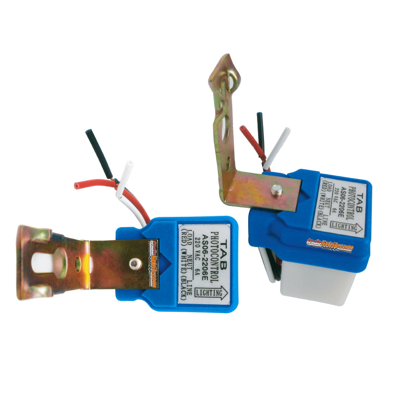 TAB Photocell Fotosel AS06 2206E 220 V AC 6A digunakan untuk menyalakan dan memadamkan lampu secara otomatis. TAB Photocell AS06 2206E 6 ampere dan tegangan 220 V AC dengan bentuk penampang kotak dan memiliki sensor cahaya yang bekerja dengan menyalakan lampu secara otomatis pada saat kondisi sekelilingnya gelap dan memadamkan lampu pada saat sekelilingnya terang. Dapat dipasang didalam ruangan (Indoor) atau diluar ruangan (Outdoor). Mudah dalam pemasangan, penggunaan dan tahan lama. Diproduksi berdasarkan standard International. Photocell / sensor cahaya otomatis / Fotosel / Photocontrol, cocok digunakan di rumah, gedung perkantoran, pusat perbelanjaan dan pabrik industri.