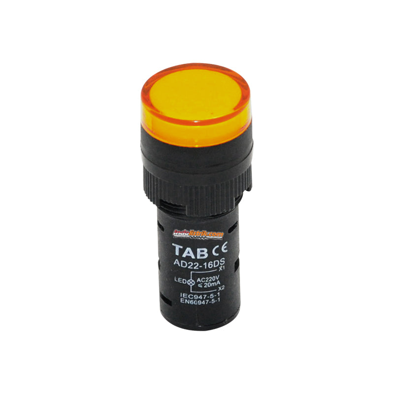 TAB Pilot Lamp LED 16 mm AD22-16DS 220 V AC kuning digunakan untuk indikasi arus di panel listrik agar memudahkan mengontrol ada atau tidaknya arus listrik dipanel tersebut. TAB Pilot lamp LED memiliki diameter 16 mm dengan bentuk kepala bulat berwarna kuning dan tegangan 220 V AC sangat ringan dan compact. Mudah dalam pemasangan dengan cara di hubungkan langsung pada panel listrik (Direct). Diproduksi berdasarkan standard International IEC 1010-1 (1990). Pilot Lamp / Lampu indikator / lampu untuk panel, cocok digunakan di rumah, gedung perkantoran, pusat perbelanjaan, pabrik industri dan gardu listrik.