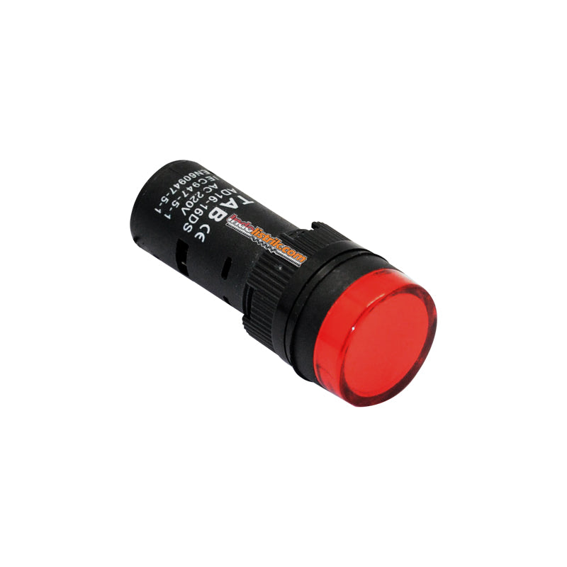 TAB Pilot Lamp LED 16 mm AD22-16DS 220 V AC merah digunakan untuk indikasi arus di panel listrik agar memudahkan mengontrol ada atau tidaknya arus listrik dipanel tersebut. TAB Pilot lamp LED memiliki diameter 16 mm dengan bentuk kepala bulat berwarna merah dan tegangan 220 V AC sangat ringan dan compact. Mudah dalam pemasangan dengan cara di hubungkan langsung pada panel listrik (Direct). Diproduksi berdasarkan standard International IEC 1010-1 (1990). Pilot Lamp / Lampu indikator / lampu untuk panel, cocok digunakan di rumah, gedung perkantoran, pusat perbelanjaan, pabrik industri dan gardu listrik.