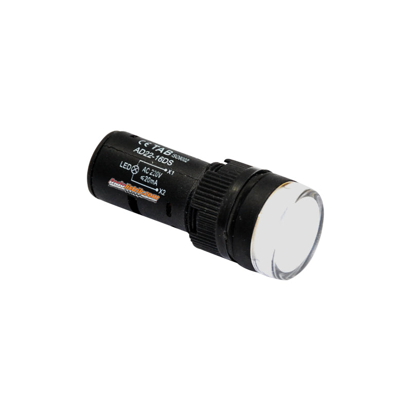TAB Pilot Lamp LED 16 mm AD22-16DS 220 V AC putih digunakan untuk indikasi arus di panel listrik agar memudahkan mengontrol ada atau tidaknya arus listrik dipanel tersebut. TAB Pilot lamp LED memiliki diameter 16 mm dengan bentuk kepala bulat berwarna putih dan tegangan 220 V AC sangat ringan dan compact. Mudah dalam pemasangan dengan cara di hubungkan langsung pada panel listrik (Direct). Diproduksi berdasarkan standard International IEC 1010-1 (1990). Pilot Lamp / Lampu indikator / lampu untuk panel, cocok digunakan di rumah, gedung perkantoran, pusat perbelanjaan, pabrik industri dan gardu listrik.