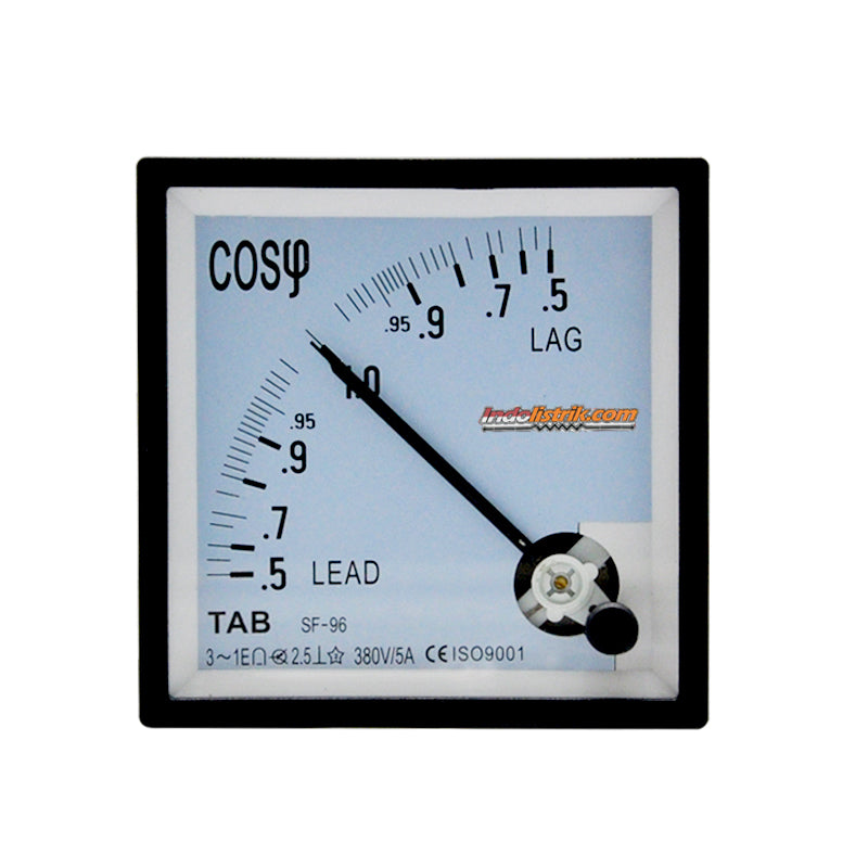 TAB Power Factor Meter 96x96 380V digunakan untuk mengukur besarnya faktor kerja (power faktor) atau pergeseran fasa antara tegangan dan arus dalam satu rangkaian listrik AC. TAB Power Factor Meter 96x96 380V Menggunakan koil yang berkualitas untuk memberikan hasil pengukuran optimal. Kualitas handal dengan diproduksi berdasarkan International Standard. Mudah dalam pemasangan dan penggunaan. TAB Power Factor Meter 96x96 380V cocok digunakan untuk perakitan berbagai panel listrik, di rumah, gedung perkantoran, pusat perbelanjaan dan pabrik dan compatible untuk dirakit dengan komponen listrik lainnya.