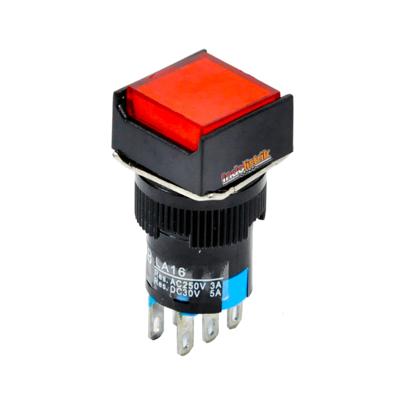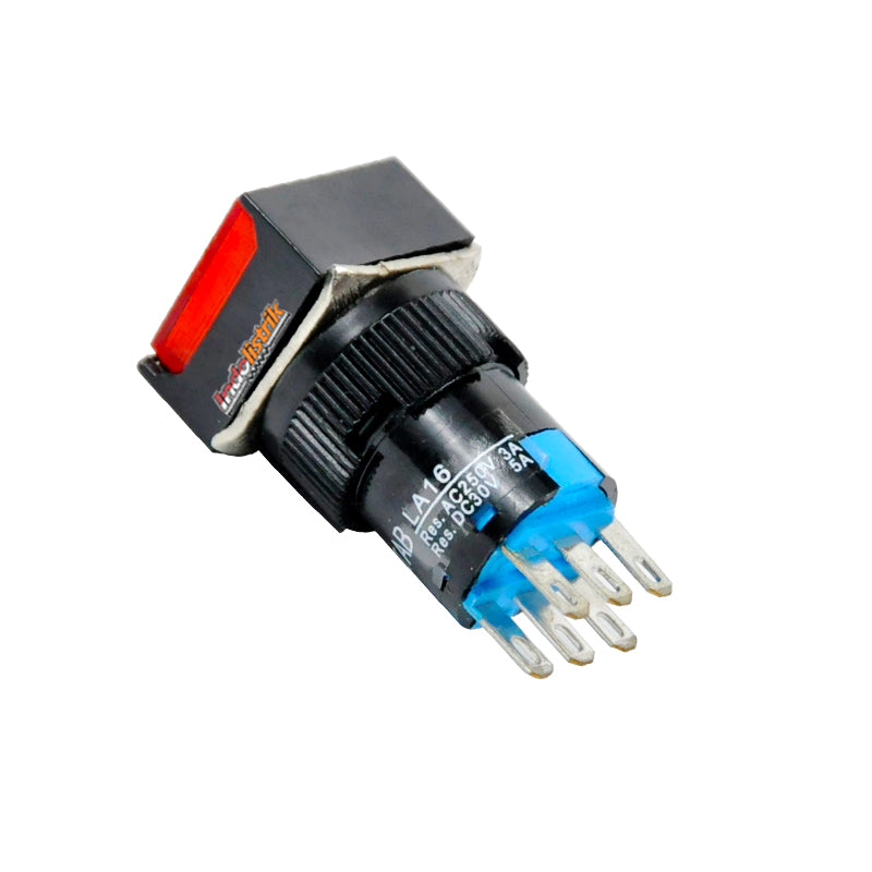 TAB Push Button 16mm LA16F-22 Kotak Merah digunakan sebagai saklar untuk menghubungkan dan memutuskan aliran arus listrik dengan cara ditekan. Push button LA16F-22 model kotak berwarna merah memiliki diameter 16 mm, memiliki kontak 2 NO dan 2 NC. Push Button 16 mm LA16F-22 dengan sistem Momentary / spring return artinya akan menghubungkan atau memutus aliran arus listrik pada saat ditekan dan pada saat tidak ditekan (dilepas), maka akan kembali pada posisi normal. Mudah dalam pemasangan, penggunaan dan tahan lama. Diproduksi berdasarkan standard International. Push button / Saklar Push button / Saklar tombol tekan, cocok digunakan di rumah, gedung perkantoran, pusat perbelanjaan dan pabrik industri.