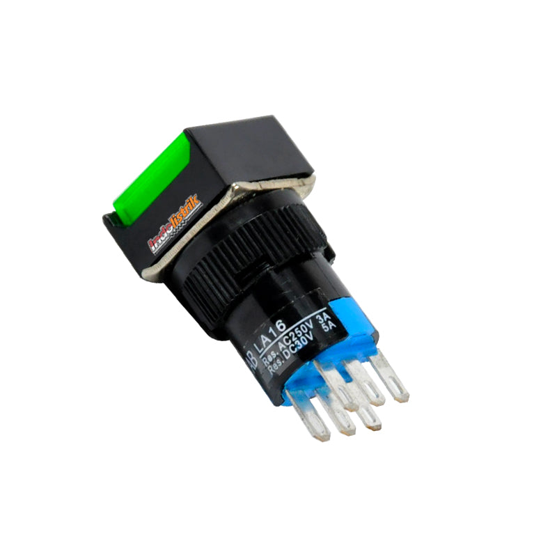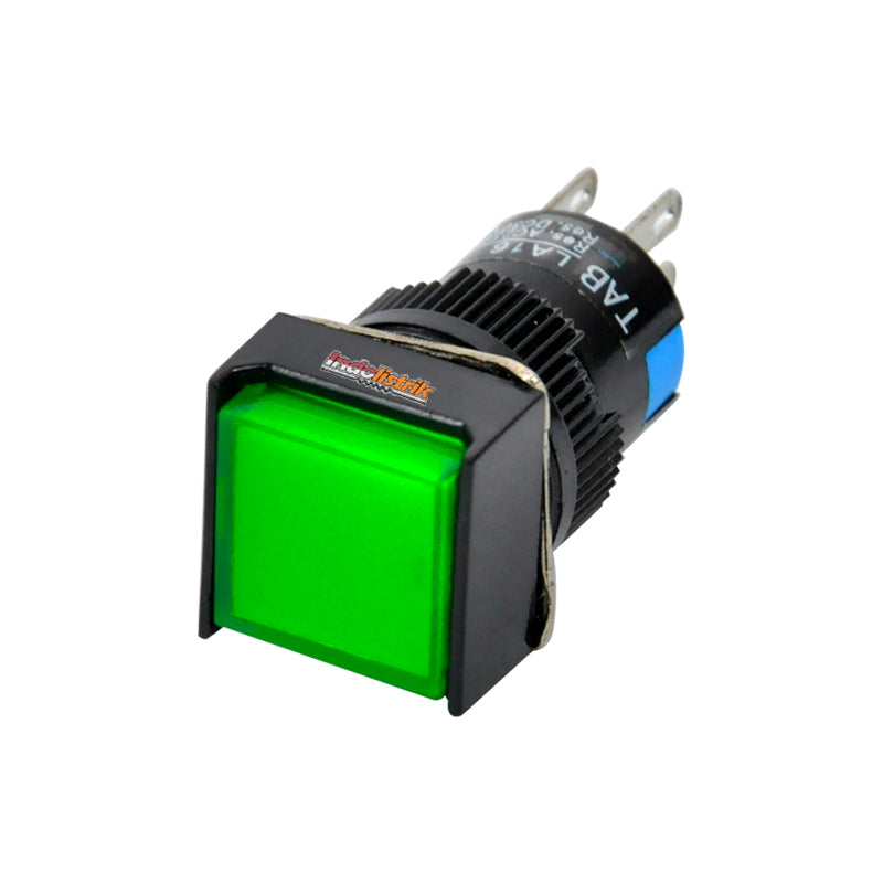 TAB Push Button 16mm LA16F-22S Kotak Hijau digunakan untuk menghubungkan atau memutuskan aliran arus listrik dengan sistem kerja ditekan. Push button LA16F-22S model kotak berwarna hijau dengan diameter 16 mm, memiliki kontak 2 NO dan 2 NC. TAB Push Button 16mm LA16F-22S Kotak Hijau dengan sistem Alternate / Push lock artinya akan menghubungkan atau memutus aliran arus listrik pada saat ditekan akan mengunci dan bekerja sebagai saklar. Saklar akan kembali pada posisi normal pada saat ditekan kembali. Mudah dalam pemasangan, penggunaan dan tahan lama. Diproduksi berdasarkan standard International. Push button / Saklar Push button / Saklar tombol tekan, cocok digunakan di rumah, gedung perkantoran, pusat perbelanjaan dan pabrik industri.