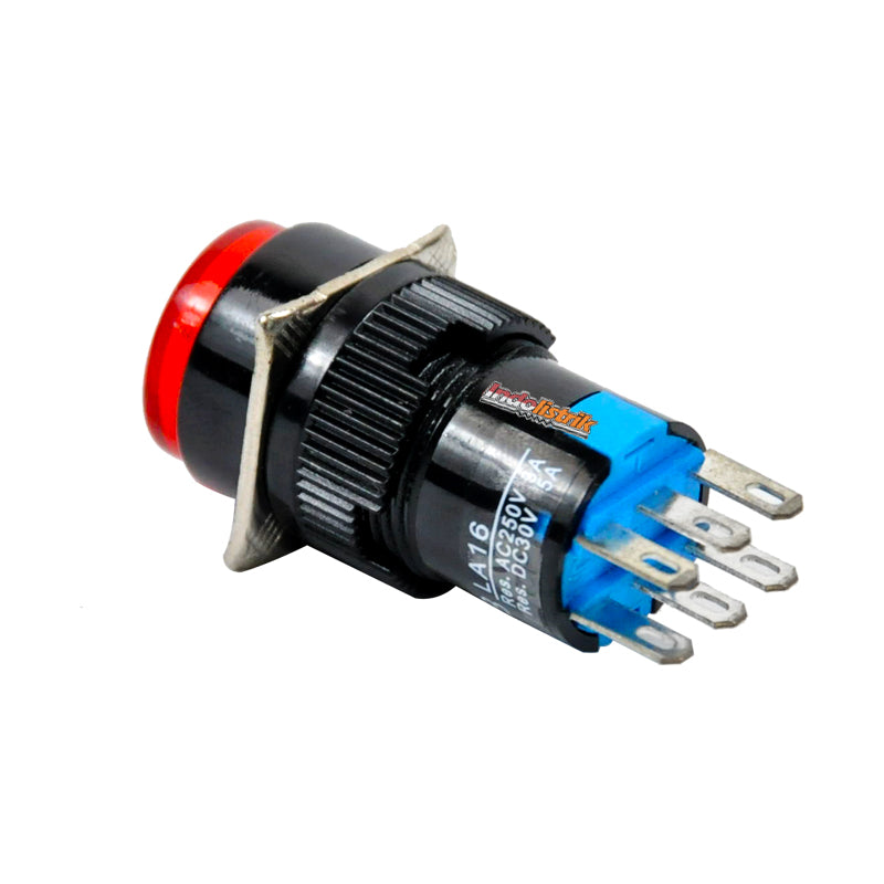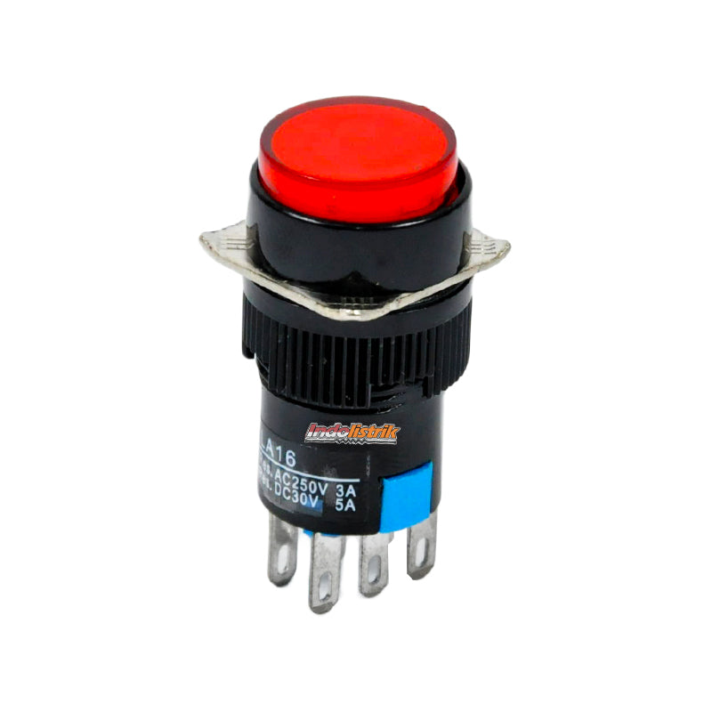 Push Button 16 mm LA16Y-22 Bulat Merah digunakan sebagai saklar untuk menghubungkan dan memutuskan aliran arus listrik dengan cara ditekan. Push button LA16Y-22 model bulat berwarna merah memiliki diameter 16 mm, memiliki kontak 2 NO dan 2 NC. Push Button 16 mm LA16Y-22 dengan sistem Momentary / spring return artinya akan menghubungkan atau memutus aliran arus listrik pada saat ditekan dan pada saat tidak ditekan (dilepas), maka akan kembali pada posisi normal. Mudah dalam pemasangan, penggunaan dan tahan lama. Diproduksi berdasarkan standard International. Push button / Saklar Push button / Saklar tombol tekan, cocok digunakan di rumah, gedung perkantoran, pusat perbelanjaan dan pabrik industri.