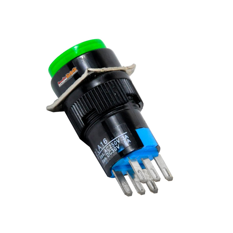 TAB Push Button 16mm LA16Y-22S Bulat Hijau digunakan untuk menghubungkan atau memutuskan aliran arus listrik dengan sistem kerja ditekan. Push button LA16Y-22S model bulat berwarna hijau dengan diameter 16 mm, memiliki kontak 2 NO dan 2 NC. TAB Push Button 16mm LA16Y-22S Bulat Hijau dengan sistem Alternate / Push lock artinya akan menghubungkan atau memutus aliran arus listrik pada saat ditekan akan mengunci dan bekerja sebagai saklar. Saklar akan kembali pada posisi normal pada saat ditekan kembali. Mudah dalam pemasangan, penggunaan dan tahan lama. Diproduksi berdasarkan standard International. Push button / Saklar Push button / Saklar tombol tekan, cocok digunakan di rumah, gedung perkantoran, pusat perbelanjaan dan pabrik industri.