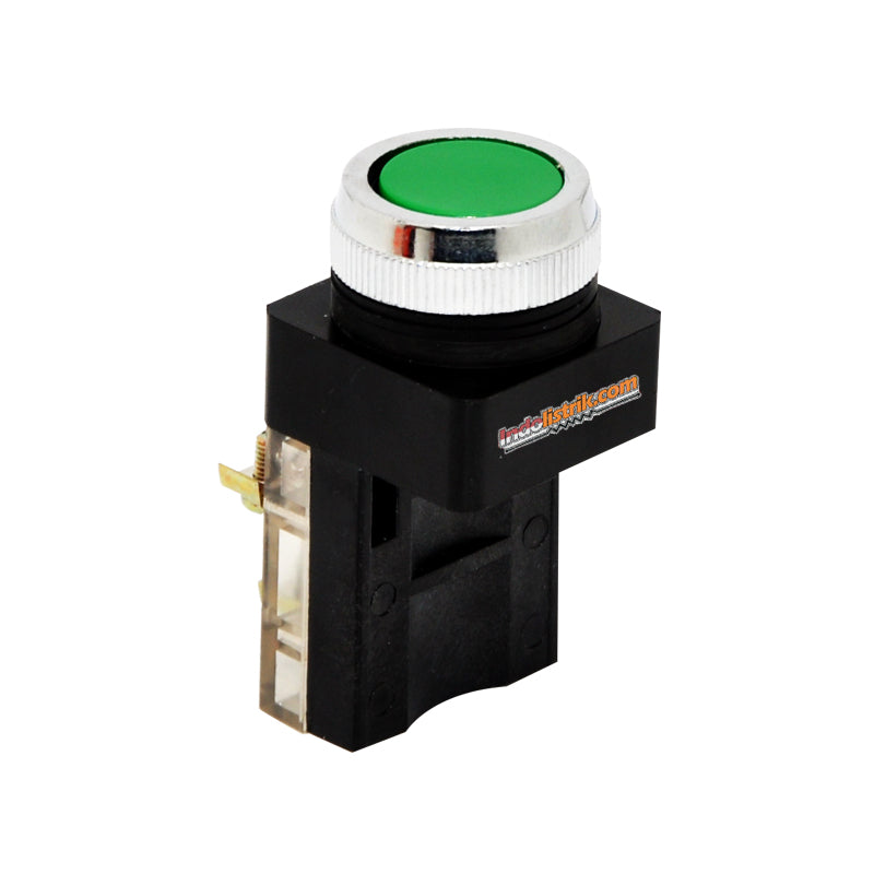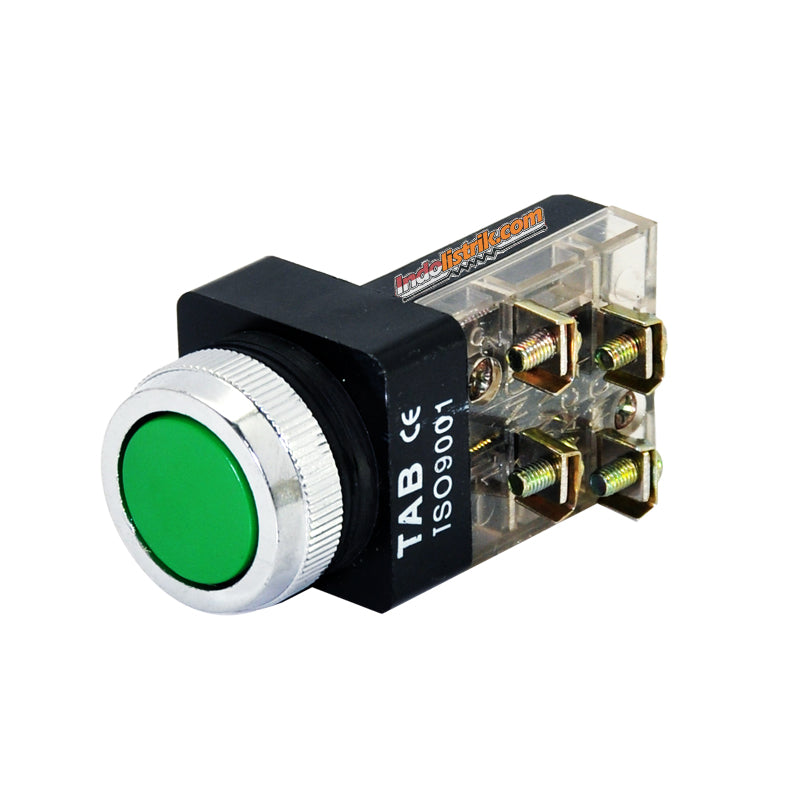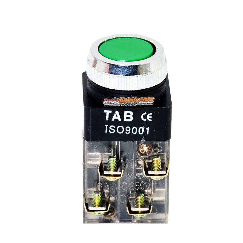 TAB Push Button PB2511 Hijau digunakan sebagai saklar untuk menghubungkan atau memutus aliran arus listrik dengan sistem kerja tekan. TAB Push Button PB2511 warna Hijau dengan model kepala bulat berdiameter 25 mm dan memiliki kontak 1 NO dan 1 NC. Dapat bekerja dengan sistem Momentary / spring return yang bekerja saat tombol ditekan dan saat tombol tidak ditekan (dilepas) maka saklar kembali pada posisi normal. Mudah dalam pemasangan, penggunaan dan tahan lama. Diproduksi berdasarkan standard International. Push button / Saklar Push button / Saklar tombol tekan, cocok digunakan di rumah, gedung perkantoran, pusat perbelanjaan dan pabrik industri.