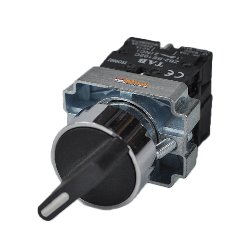 TAB Selector Switch 2posisi Stay-Put 22mm LAY5-BD25 digunakan sebagai saklar yang digerakan oleh tuas putar untuk memilih satu dari dua atau lebih posisi. TAB Selector Switch 2posisi Stay-Put 22mm LAY5-BD25 memiliki ukuran diameter lubang 22 mm dan kontak 1 NO dan 1 NC dengan 2 posisi putar. Pada tipe stay put, selector dapat berhenti pada satu posisi dan dapat dipindahkan ke posisi lain dengan memutar kembali selector tersebut. Terbuat dari bahan yang berkualitas handal sehingga aman dan kualitas terjamin, mudah dipasang dan mudah digunakan serta tahan lama. Diproduksi berdasarkan standard Internasional IEC 60947, BSEN 60947. TAB Selector Switch 2posisi Stay-Put 22mm LAY5-BD25 cocok untuk perakitan panel listrik, digunakan di gedung perkantoran, perhotelan dan gedung industri.