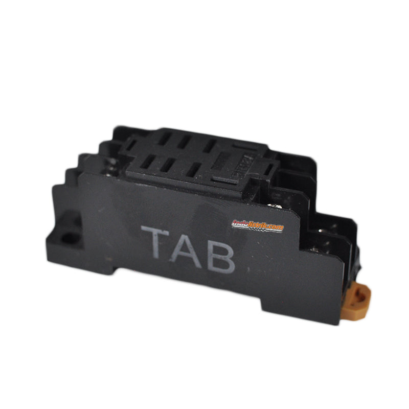 TAB Socket Relay PTF08A digunakan sebagai dudukan tempat pemasangan relay untuk mempermudah penempatan relay dan memaintenance relay jika terjadi kerusakan relay. TAB Socket Relay PTF08A warna hitam dengan dimensi 77.8 x 27.8 x 29.6 mm, memiliki 8 pin untuk digunakan dengan relay omron tipe LY-2, LY-2N. Socket relay yang harus digunakan harus disesuaikan dengan tipe relay yang akan dipakai, karna setiap tipe relay mempunyai jumlah dan bentuk kaki yang berbeda-beda. Dilengkapi dengan klip pengunci untuk mempermudah pemasangan pada DIN rail. Mudah dalam pemasangan, penggunaan dan tahan lama. Diproduksi berdasarkan standard International. TAB Socket relay PTF08A, banyak digunakan pada perakitan panel listrik dan peralatan electronik. Cocok digunakan di rumah, gedung perkantoran, pusat perbelanjaan dan pabrik industri.