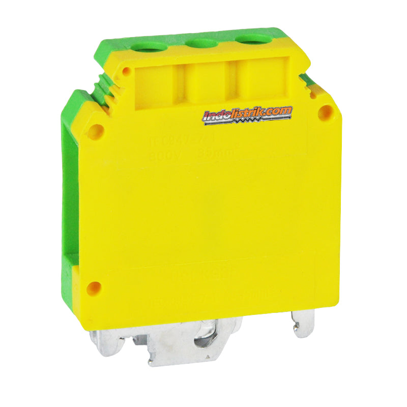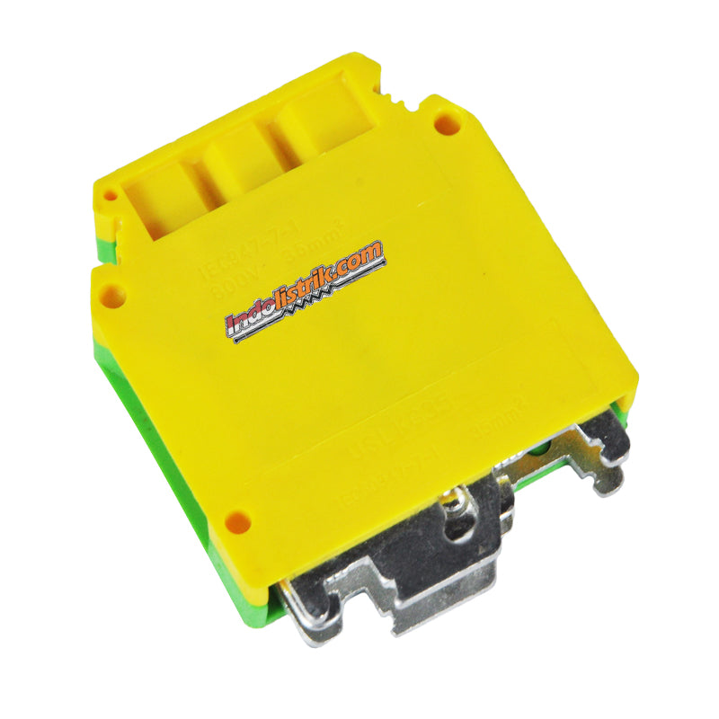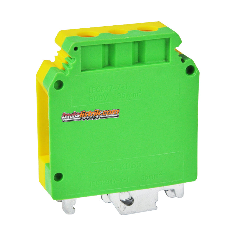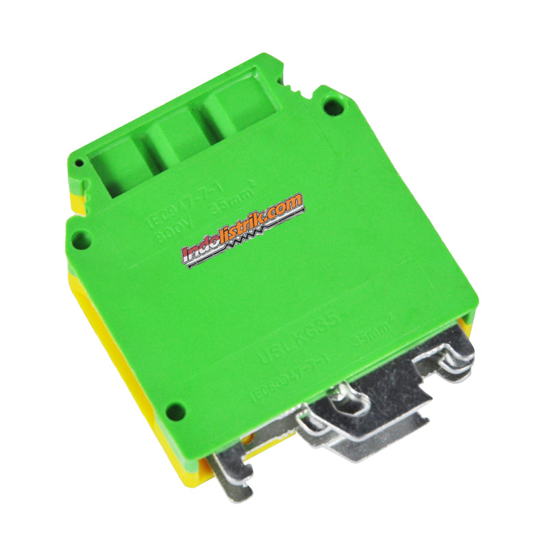 TAB Terminal Blok Grounding USLKG 35 digunakan untuk menghubungkan arus dari komponen ke grounding sistem. TAB Terminal blok USLKG 35 berwarna kuning hijau dengan rating arus 125 ampere untuk ukuran 35 mmsq dan tegangan 800 Volt. Perakitan panel listrik dengan menggunakan terminal blok dapat menghemat biaya pada perakitan komponen listrik dengan penggunaan kabel yang lebih sedikit. Terminal blok memberikan perlindungan optimal pada komponen, karena apabila terjadi konsleting, arus akan terputus di terminal blok sebelum sampai di komponen utama. Terminal Blok USLKG merupakan terminal 1 pole yang dapat dipasang saling berdampingan satu dengan yang lain untuk menyesuaikan dengan jumlah pole yang diperlukan. Mudah dipasangkan pada DIN rail 1 fungsi dan dapat dilepas dan ditambah sesuai kebutuhan. Mudah dalam pemasangan, penggunaan dan tahan lama. Diproduksi berdasarkan standard international IEC 947-7-1. Ground Modular Terminal block / blok terminal / Terminal Strip / Insulated Blok / Terminal Connector, dapat digunakan untuk perakitan panel listrik, component electronic dan automotive.