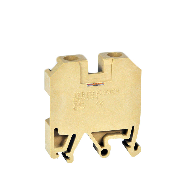 TAB terminal blok SAK 10 digunakan untuk menghubungkan arus dari komponen yang satu ke komponen yang lain. Dapat juga digunakan sebagai jumper atau penghubung apabila ada penambahan komponen. TAB terminal blok SAK 10 berwarna cream dengan rating arus 57 ampere untuk ukuran kabel 10 mmsq. Perakitan panel listrik dengan menggunakan terminal blok dapat menghemat biaya pada perakitan komponen listrik dengan penggunaan kabel yang lebih sedikit. Terminal blok memberi perlindungan optimal pada komponen, karena apabila terjadi konsleting, arus akan terputus di terminal blok sebelum sampai di komponen utama. Terminal blok type SAK merupakan terminal 1 pole yang dapat dipasang saling berdampingan satu dengan yang lain untuk menyesuaikan dengan jumlah pole yang di perlukan. Mudah dipasangkan pada DIN rail 1 fungsi dan dapat dilepas dan ditambah sesuai kebutuhan. Mudah dalam pemasangan, penggunaan dan tahan lama. Diproduksi berdasarkan standard international. Terminal block / blok terminal / terminal strip / insulated connector, dapat digunakan untuk perakitan panel listrik, component electronic dan automotive dan cocok digunakan di gardu listrik, perkantoran, rumah, gedung dan pabrik indrustri.