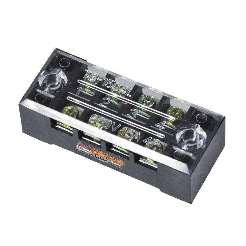 TAB Terminal block TB 1504 digunakan untuk menghubungkan arus dari komponen yang satu ke komponen yang lain. Dapat juga digunakan sebagai jumper atau penghubung apabila ada penambahan komponen dan dapat dilepas sesuai kebutuhan. TAB Terminal block TB 1504 warna hitam memiliki kontak 4 pole dengan dimensi 54 x 22 x 17 mm dan arus 15 ampere, dapat menghemat biaya pada perakitan komponen listrik dengan penggunaan kabel yang lebih sedikit. Memberikan perlindungan optimal pada komponen apabila terjadi konsleting maka arus akan terputus di terminal blok sebelum sampai pada komponen utama. Dipasang pada box panel dengan cara dibaut. Mudah dalam pemasangan, penggunaan dan tahan lama. Diproduksi berdasarkan standard International. Terminal blok / Block terminal / Terminal strip / Insulated block / Terminal connector, dapat digunakan pada perakitan panel listrik, komponen electronik dan instalasi listrik lainnya. Cocok digunakan di rumah, gedung perkantoran, pusat perbelanjaan dan pabrik industri.