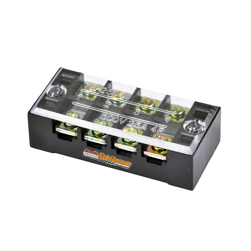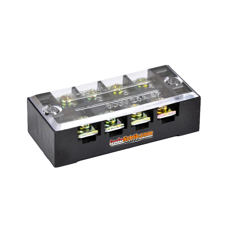 TAB Terminal block TB 2504 digunakan untuk menghubungkan arus dari komponen yang satu ke komponen yang lain. Dapat juga digunakan sebagai jumper atau penghubung apabila ada penambahan komponen dan dapat dilepas sesuai kebutuhan. TAB Terminal block TB 2504 warna hitam memiliki kontak 4 pole dengan dimensi 67 x 30 x 19 mm dan arus 25 ampere, dapat menghemat biaya pada perakitan komponen listrik dengan penggunaan kabel yang lebih sedikit. Memberikan perlindungan optimal pada komponen apabila terjadi konsleting maka arus akan terputus di terminal blok sebelum sampai pada komponen utama. Dipasang pada box panel dengan cara dibaut. Mudah dalam pemasangan, penggunaan dan tahan lama. Diproduksi berdasarkan standard International. Terminal blok / Block terminal / Terminal strip / Insulated block / Terminal connector, dapat digunakan pada perakitan panel listrik, komponen electronik dan instalasi listrik lainnya. Cocok digunakan di rumah, gedung perkantoran, pusat perbelanjaan dan pabrik industri.