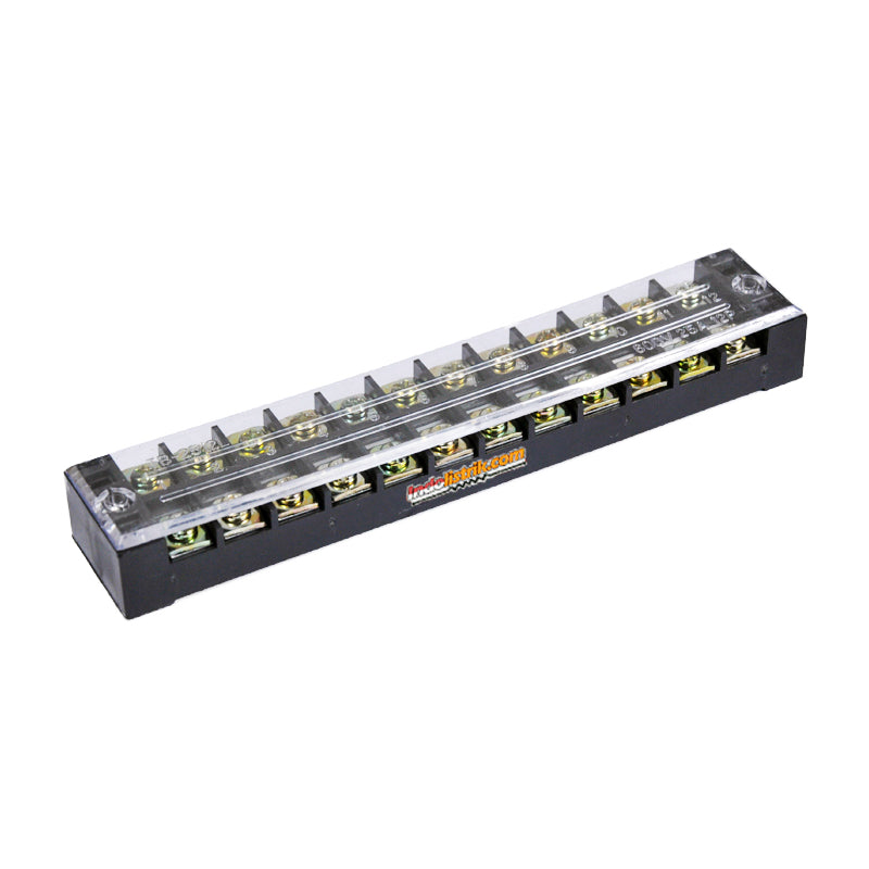 TAB Terminal block TB 2512 digunakan untuk menghubungkan arus dari komponen yang satu ke komponen yang lain. Dapat juga digunakan sebagai jumper atau penghubung apabila ada penambahan komponen dan dapat dilepas sesuai kebutuhan. TAB Terminal block TB 2512 warna hitam memiliki kontak 12 pole dengan dimensi 163 x 30 x 19 mm dan arus 25 ampere, dapat menghemat biaya pada perakitan komponen listrik dengan penggunaan kabel yang lebih sedikit. Memberikan perlindungan optimal pada komponen apabila terjadi konsleting maka arus akan terputus di terminal blok sebelum sampai pada komponen utama. Dipasang pada box panel dengan cara dibaut. Mudah dalam pemasangan, penggunaan dan tahan lama. Diproduksi berdasarkan standard International. Terminal blok / Block terminal / Terminal strip / Insulated block / Terminal connector, dapat digunakan pada perakitan panel listrik, komponen electronik dan instalasi listrik lainnya. Cocok digunakan di rumah, gedung perkantoran, pusat perbelanjaan dan pabrik industri.