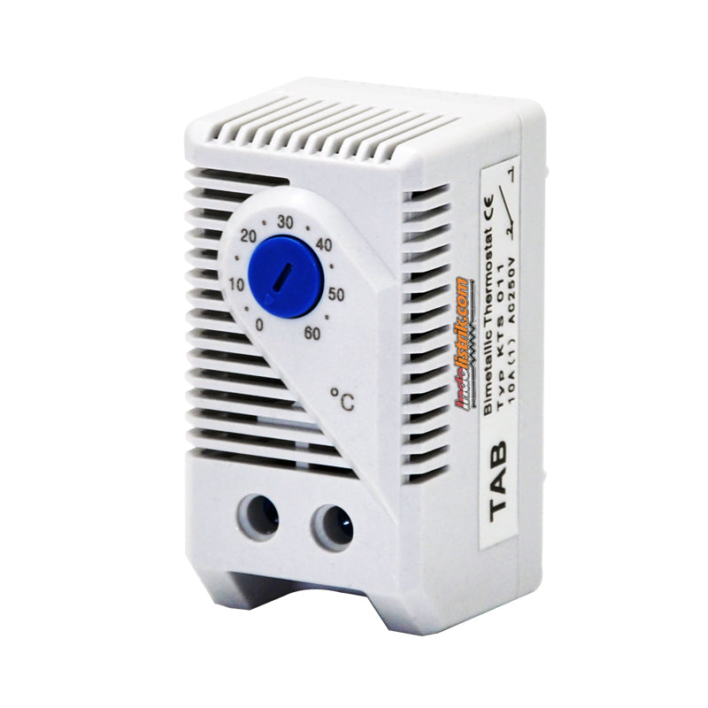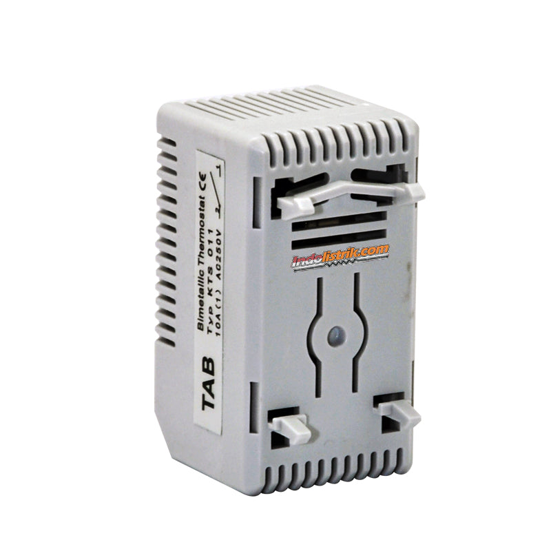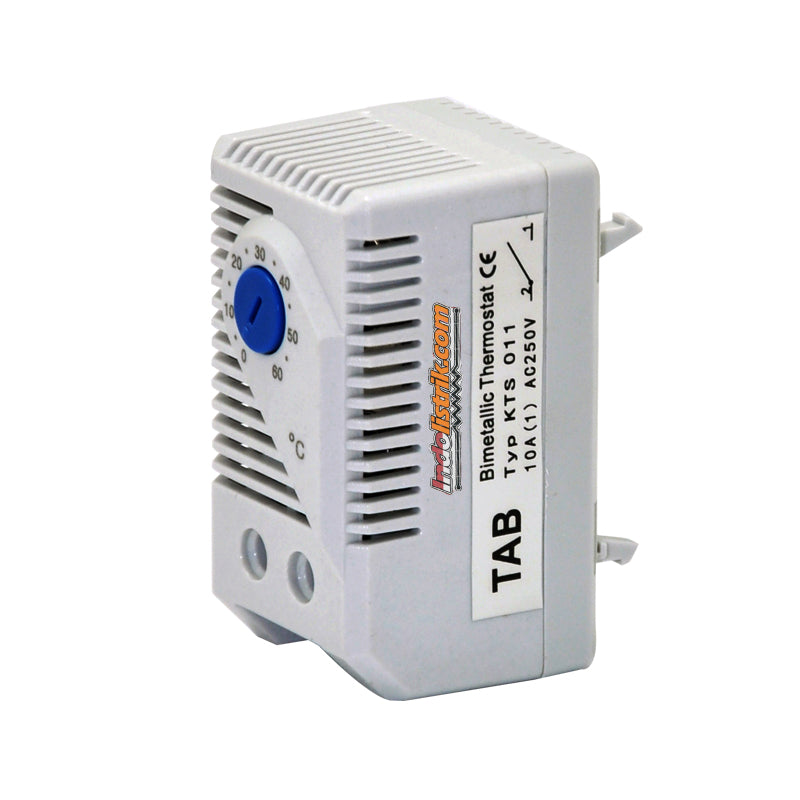 TAB Thermostat KTS 011-F (0-60C) NO 10A 110-250VAC/DC biasanya terbuka atau pembuat kontak yang berfungsi untuk mengatur kipas filter dan penukar panas atau untuk mengatur sinyal switching ketika batas suhu telah melampaui, Kontak ditutup ketika suhu meningkat. KTS 011-F mempunyai aplikasi yang dipasang di Rail MCB untuk menjaga suhu dalam panel listrik, diconnectkan/disambungkan dengan fan/kipas. Thermostat KTS 011-F memiliki ukuran dimensi 60 x 33 x 43 mm dan bisa mengatur cooling fan 0 - 60 C, menggunakan contact NO dengan tegangan 110 - 250VAC/DC dan memiliki rating 10 Ampere. Terbuat dari bahan yang berkualitas handal berdasarkan International Standard, Mudah dalam pemasangan dan tahan lama. Thermostat cocok digunakan di rumah, gedung perkantoran, perhotelan, pusat perbelanjaan dan pabrik industri.
