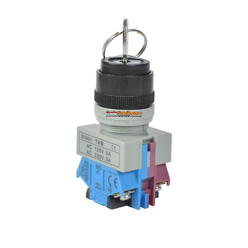 TAB Key-Selector Switch 2posisi Stay-Put 22mm XPB22-22A-11Y/21 digunakan sebagai saklar yang digerakan oleh kunci untuk memilih satu dari dua atau lebih posisi dan dapat juga digunakan untuk mengoperasikan alat yang memerlukan keamanan lebih. TAB Key-Selector Switch 2posisi Stay-Put 22mm XPB22-22A-11Y/21 memiliki ukuran diameter lubang 22 mm dan kontak 1 NO dan 1 NC dengan 2 posisi putar, dilengkapi dengan drat pengunci. Pada tipe stay put, selector dapat berhenti pada satu posisi dan dapat dipindahkan ke posisi lain dengan memutar kembali selector tersebut. Terbuat dari bahan yang berkualitas handal sehingga aman dan kualitas terjamin, mudah dipasang dan mudah digunakan serta tahan lama. Diproduksi berdasarkan standard Internasional IEC 60947, BSEN 60947. TAB Key-Selector Switch 2posisi Stay-Put 22mm XPB22-22A-11Y/21 cocok untuk perakitan panel listrik, digunakan di gedung perkantoran, perhotelan dan gedung industri.